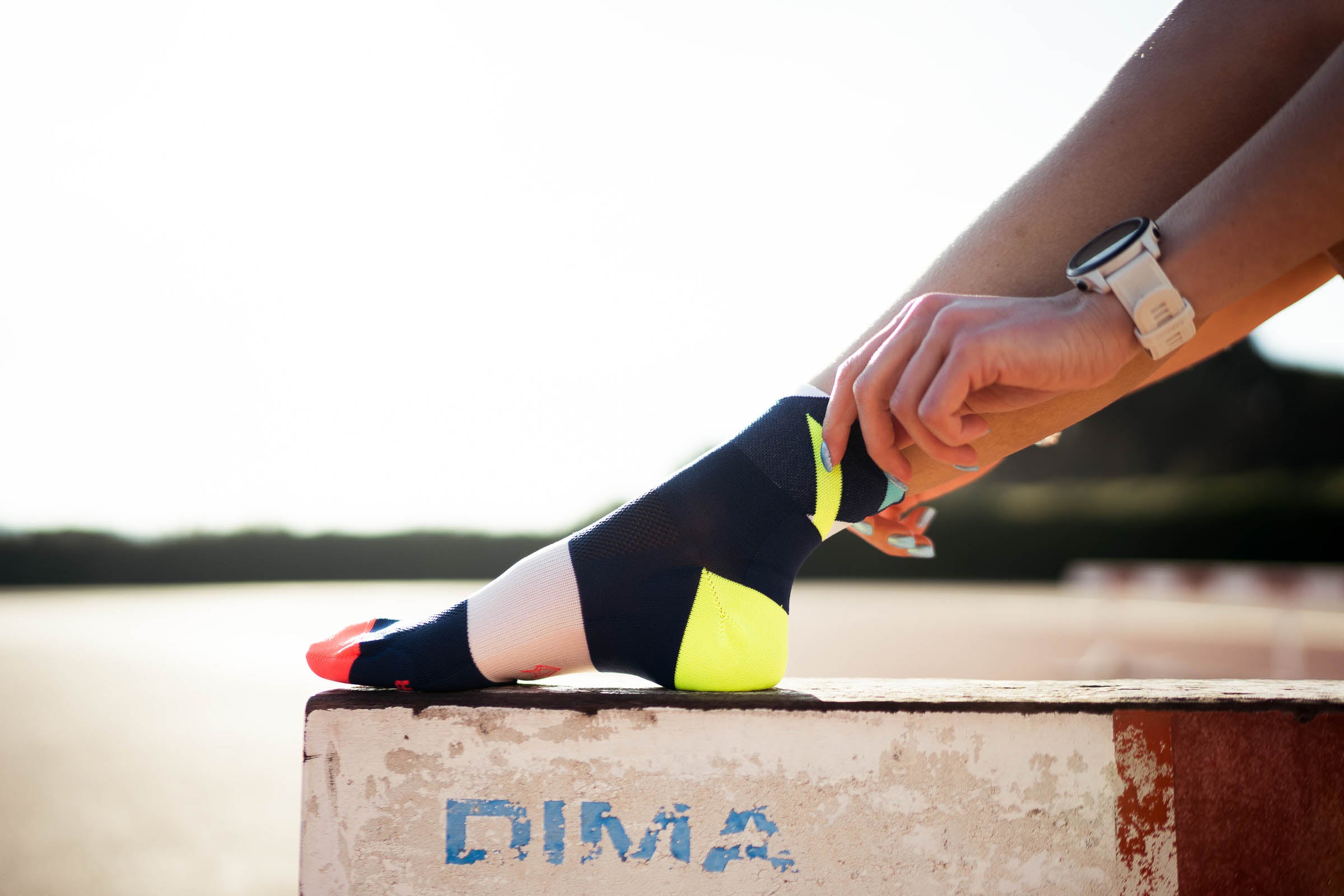 Mit der ultraleichten Mikrofaser Dryarn® bieten wir die besten Eigenschaften für unsere hochgeschnittenen Rad- und Laufsocken. Unübertroffene Atmungsaktivität und Wärmeregulierung bieten maximalen Komfort für eine herausragende Rad- und Laufleistung. Der breite, doppelt gelegte Bund verhindert, dass Schweiß in den Schuh läuft und sitzt dabei angenehm fest ohne zu verrutschen. Die dünne Verarbeitung auf dem Fußrücken - Mesh-Struktur - sorgt für beste Atmungsaktivität. Durch den integrierten Kompressionseinsatz am Mittelfuß wird ein fester, stabiler Sitz sichergestellt. Die verstärkte Zehenbox und die zusätzliche Dämpfung im Achillessehnen- und Fersenbereich schützen reizempfindliche Stellen und bieten somit besten Komfort und eine lange Haltbarkeit.