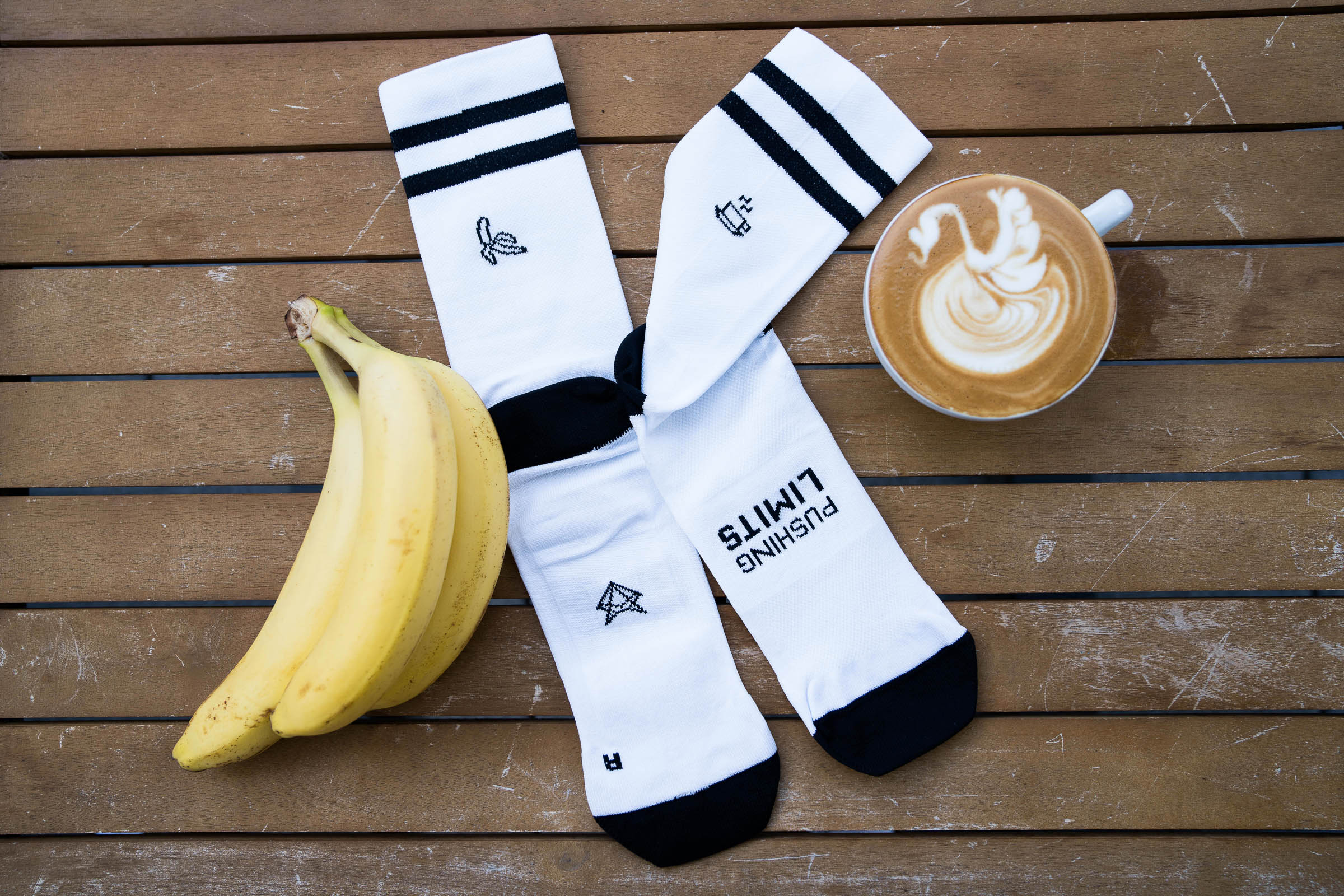 Das sind die Pre Race Socken aus der Pushing Limits Kollektion. Egal ob Rennen oder intensives Training: Kaffee ☕ und Banane 🍌 liefern dir die nötige Energie, um perfekt an den Start zu gehen!